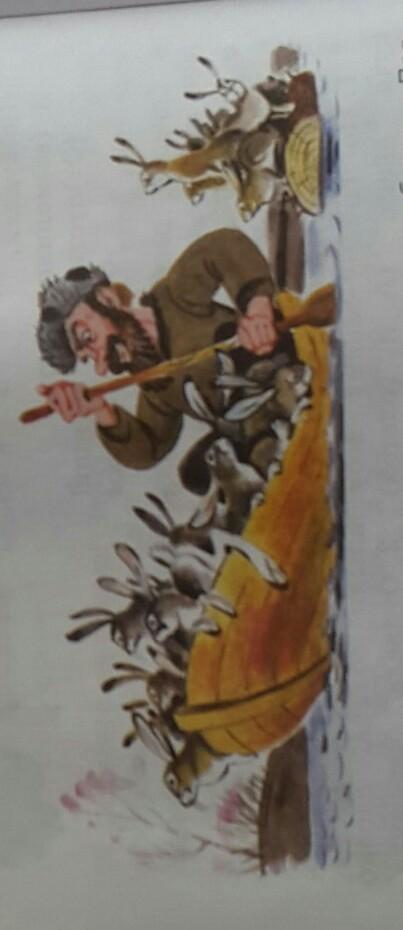 Ответ:Ол жүзіп бара жатыр. Қояндармен қайықта. Өзенде сарқырама бар. Олар сол жаққа жақындапты. Не істерін білмей тұр.