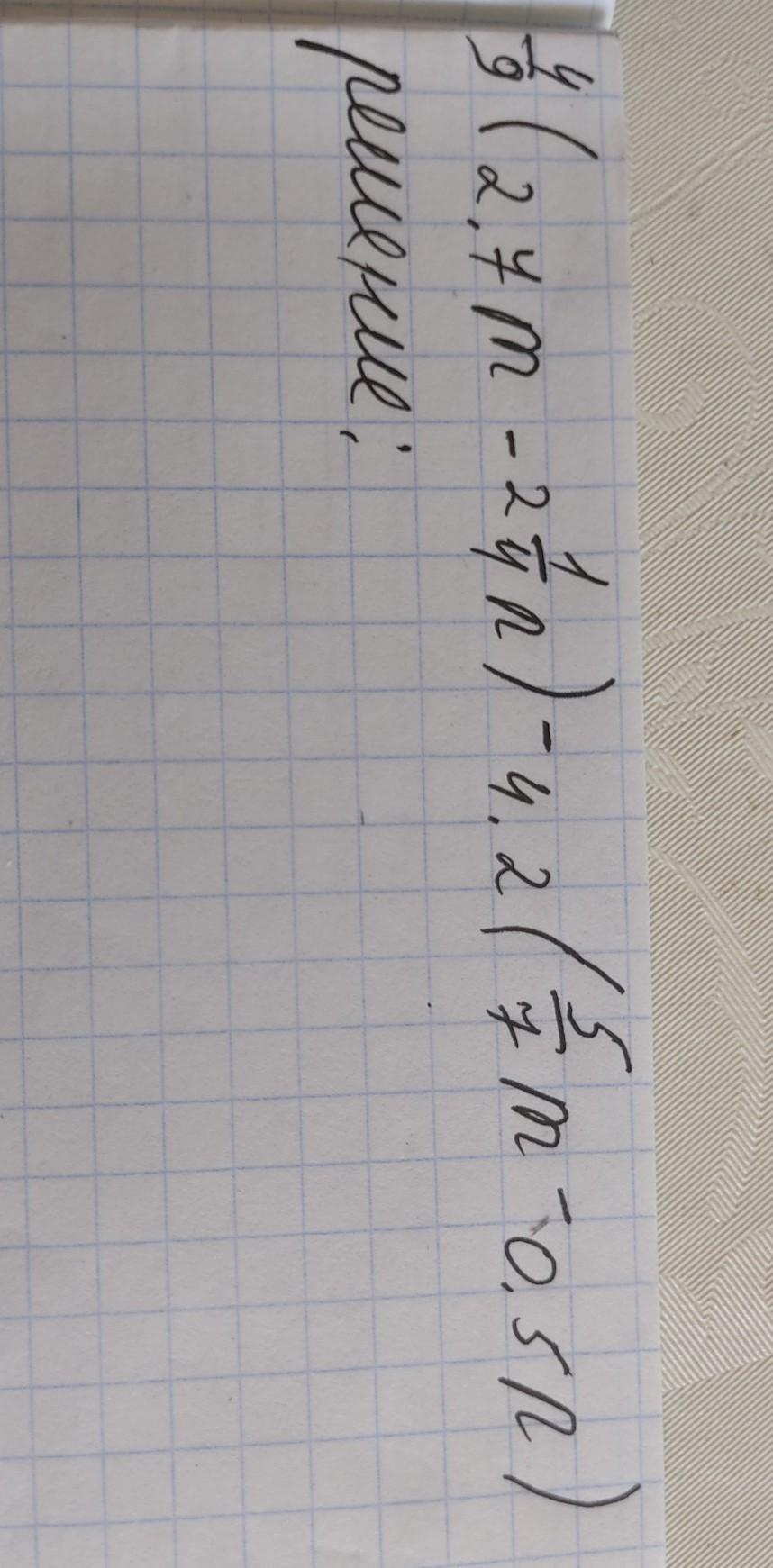 упростите выражение:4/9(2.7m-2 1/4n)-4.2(5/7m-0.5n)