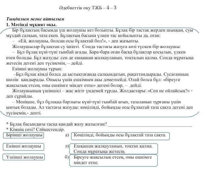 а можно ещё на 3 вопрос где там сто ит сен кай жолаушынын пикирине косыласын неликтен