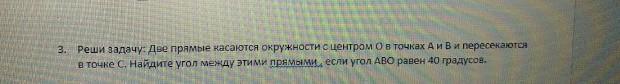 Угол ВАО тоже 40, тк ∆АОВ равнобедренный. Тогда угол АОВ=180- 80=100. СУММА УГЛОВ 4-х угольника 360. Тогда угол С=360-100-90-90=.... считай сам