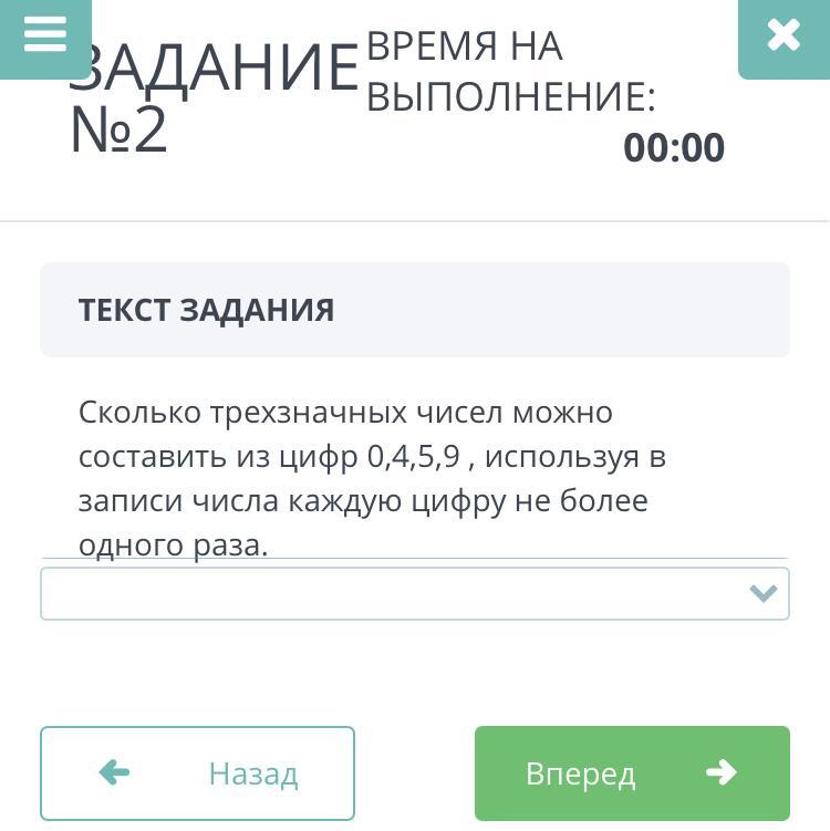 Сколько трехзначных чисел можно составить из цифр 0,4,5,9 , используя в записи числа каждую цифру не более одного раза.
