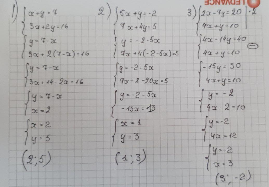 Возвращаемся к у: у=-2-5*(-1)=-2+5=3