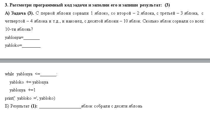 Рассмотри программный код задачи и заполни его и запиши результат: (3)