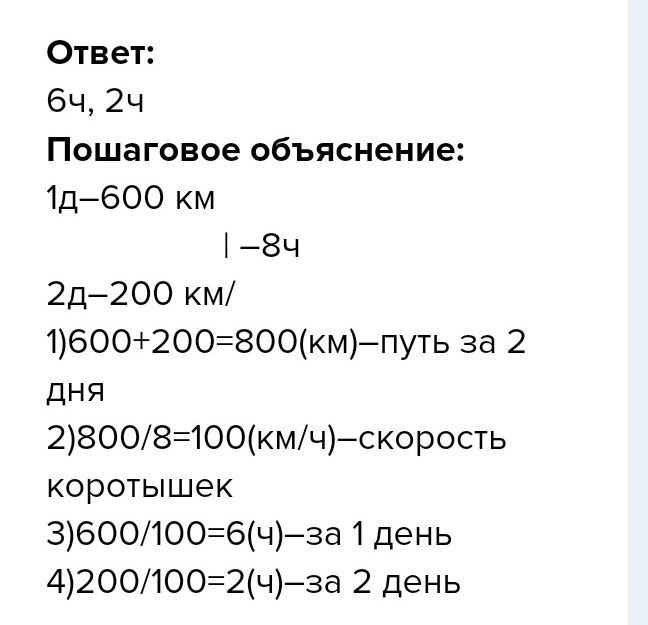 СРОЧНО!!!!!!!! 6) Коротышки в 1-й день проехали 600 км, во 2-й день - 200 км.