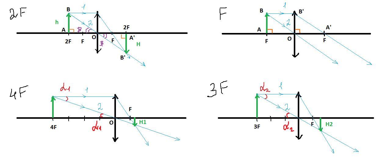 4F и 3F) Высота изображения получается меньше, чем высота предмета.