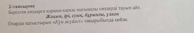 жақын-алыс, ірі-майда, суық-ыссық, бұрынгы- азырқы, үлкен- қишкене