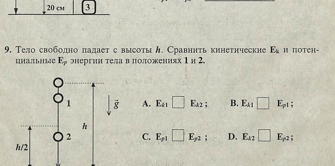 Д. Ек2 > Еп2; h2<h/2. Тело прошло отметку h/2. Еп2 меньше половины изначальной максимальной Еп. А Ек2 наоборот больше.