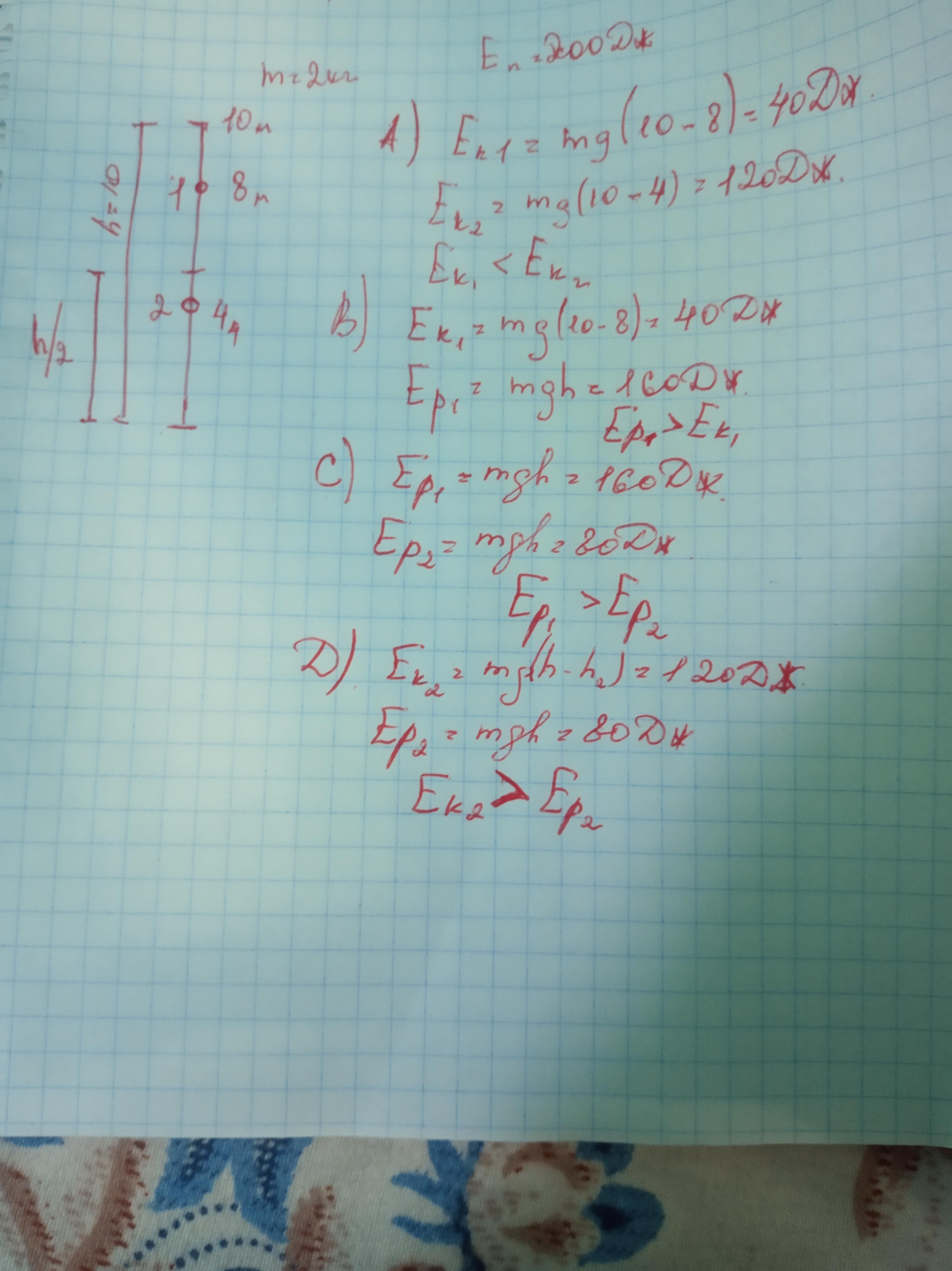 Наброски снизу в фотографии, я там просто для себя добавил численные значения и на расчетах получил соотношения Еп и Ек на разных высотах