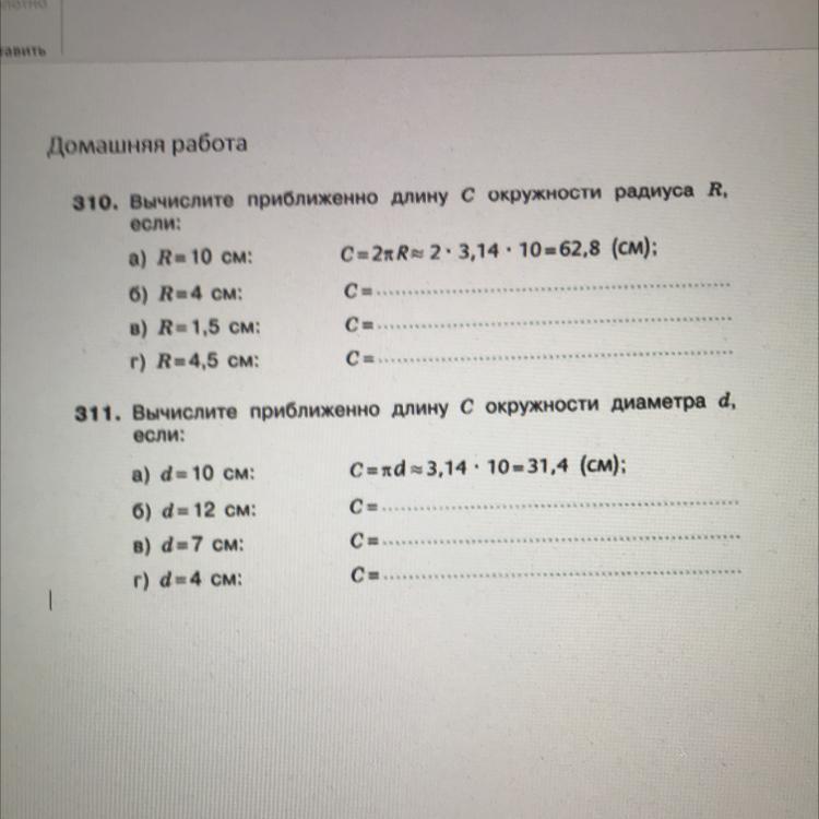 1) d=10 cм. С=пи×d=3,14×10=31,4 cм