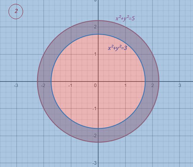 ООФ является кольцо между окружностями x²+y²=5 и x²+y²=3 .