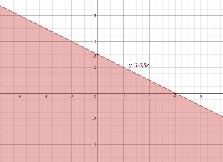 ООФ является часть плоскости, расположенная ниже прямой у=3-0,5х , сама прямая не входит в ООФ .
