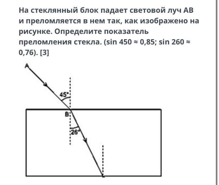 n = sin α /sin γ = sin 45 / sin 26 = 0,85 /0,76 = 1,1