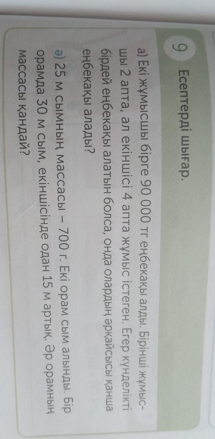 бірінші орам 30м екіншісі одан 15м коп ягни 45м тен. жалпы 30+45=75 м бул дегенің 25 м орамнын ушеі. сонда 700×3= 2100г болады жалпы салмагы