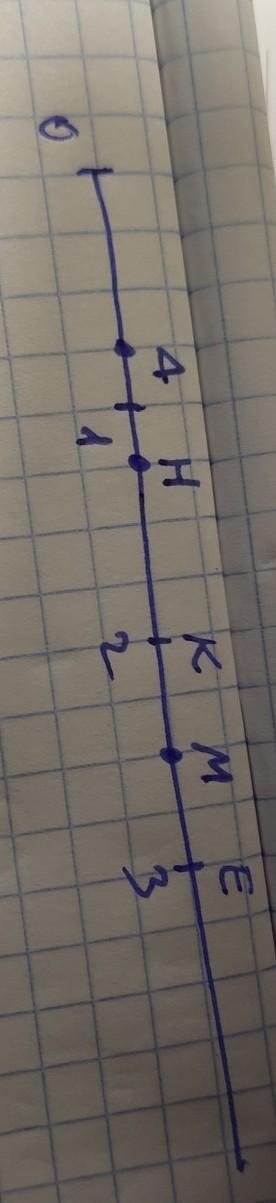 клетки.Отметьте на этой прямой точки: Е(3),К(2),М( 2 ½),Н(1 ¼),А( ¾).