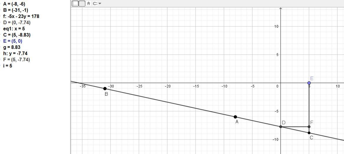 Известно, что первая координата (абцисса) точки C, лежащей на прямой AB, равна 5. Найдите вторую координату точки C,если A(-8;-6) и B(-31;-1)