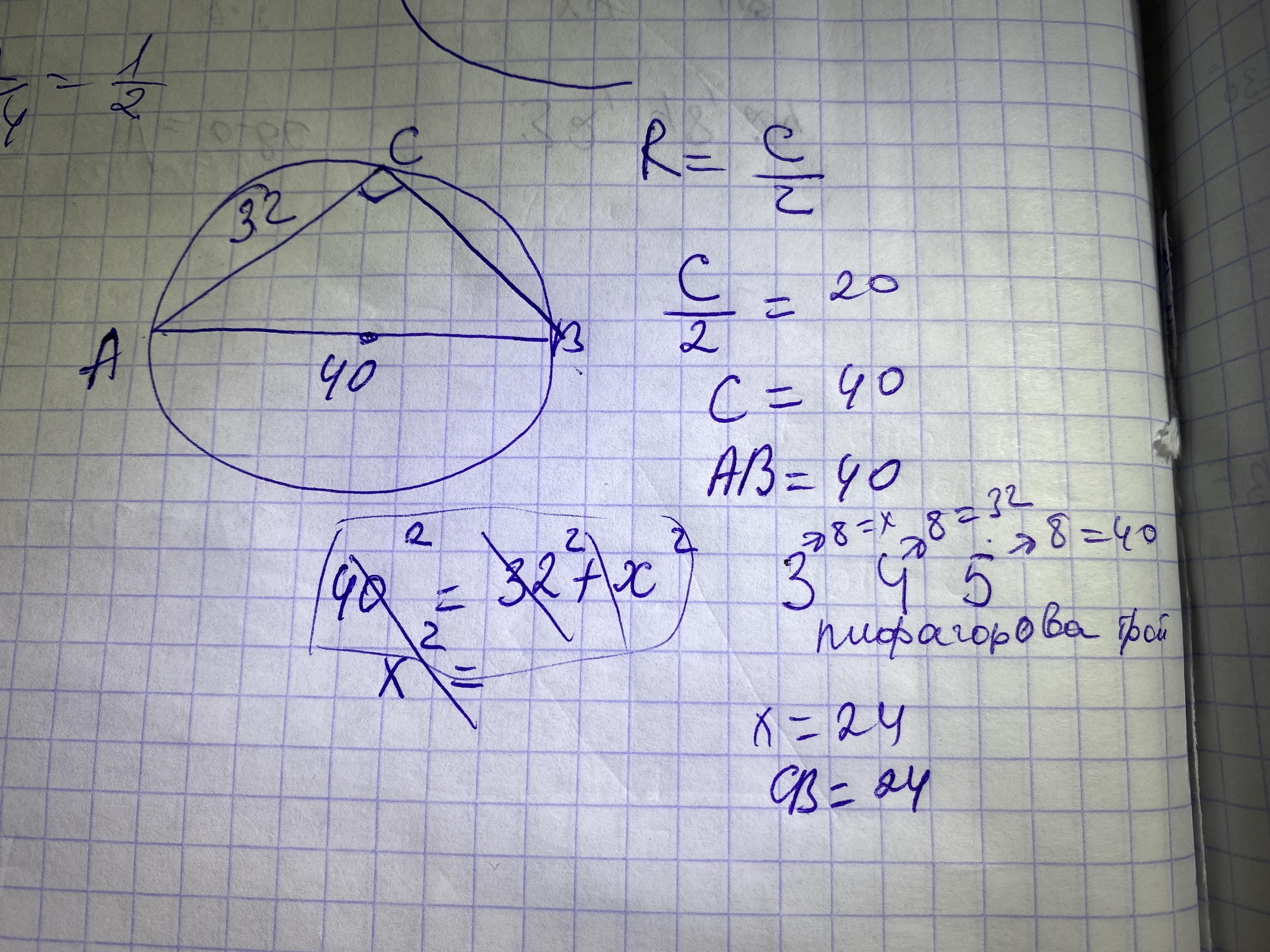 ВС=√(40^2-32^2)=√8*72=√8*9*8