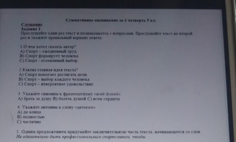 Прослушайте один раз текст и познакомьтесь с вопросами. Прослушайте текст во второй