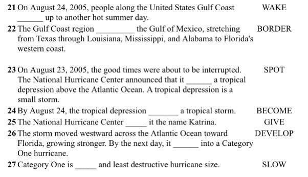 - 1 Waked 2 Borders 3 Spots 4 Becomes 5 Gived 6 Develops 7 Slowed.
