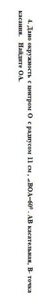 Дано окружность с центром O с радиусом 11 см, <BOA=60°. AB касательная, B- точка касания. Найдите OA