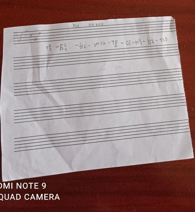 Т53 ми- соль(диез) -си- Б64 си-ми-соль (диез)- Т63 соль (диез)- си-ми- Ум53 ми- соль (бекар чистая)- си бемоль- Т53 ми-соль(диез)-си - дальше задание не понятно. но заканчивается Т53 Ми-соль(диез) - си