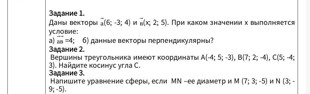 1. а) это скалярное произведение, по координатам 6х-6+20=4, 6х=-10, х=-10/6=-5/3=