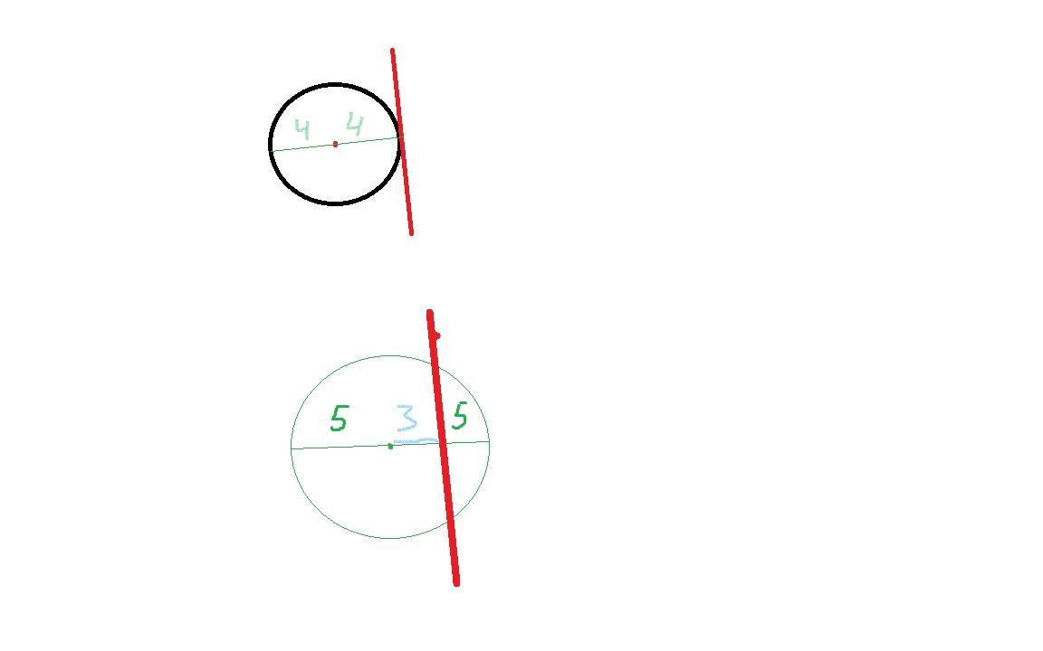 Диаметр окружности равен 8 см.Как располагается относительно этой окружности прямая, если она удалена от центра окружности на 4 см: