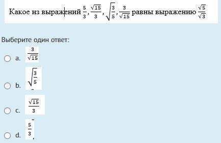 4) √15/3= √5*√3/(√3)²=√5/√3- ответ С