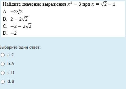 2) (√2-1)²-3=2+1-3-2√2=2√2-ответ А