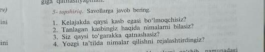 ответьте на вопросы по узбекскому 4-5 предложений на каждый вопрос срочно дам 40 баллов!