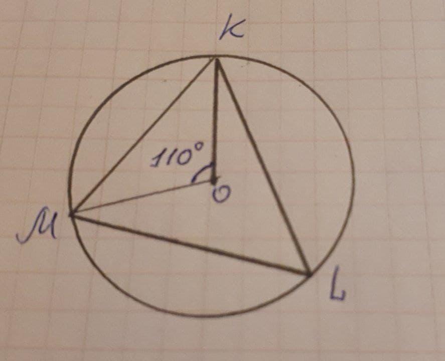 В окружность с центром О, вписан ∆KLM так, что < KOM=110°, U KL