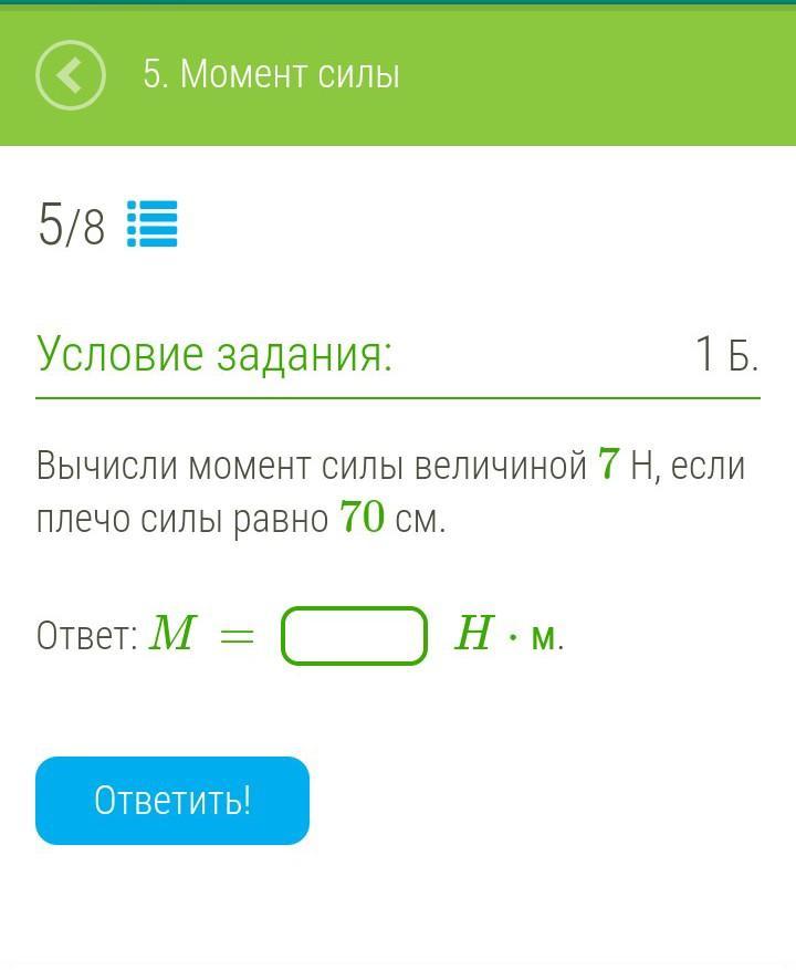 Объяснение: М=F*l=7*0,7=4,9 Н*м
