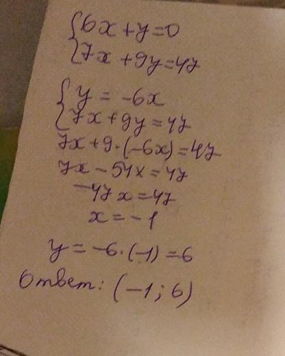 7x + 9x*(-6x)=47 , тогда x = -1, теперь подставим x в y: y=-6*(-1); y = 6