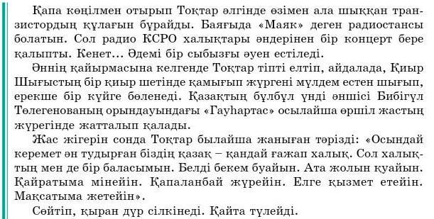 К сожалению, Токтар поворачивает ухо транзистора, который он принес с собой. Раньше была радиостанция «Маяк». Эта же радиостанция дала концерт песен народов СССР. Вдруг ... Звучит красивый свист. Что касается припева песни, то ягнята совершенно забыты даже в пустыне, на дальнем конце Дальнего Востока. «Бриллиант» в исполнении казахско-индийской соловьиной певицы Бибигуль Тулегеновой запомнится в сердцах амбициозной молодежи. Токтар словно сжигал свою молодость: «Наш казахстанский народ такой замечательный народ. Я дитя этой нации. Затяните ремень. Я иду по стопам отца. Я поеду. Я не расстроен. Я буду служить стране. Я достигну своей цели ». Орел задрожал. Он снова платит. ЗАКРЫТЬ III O