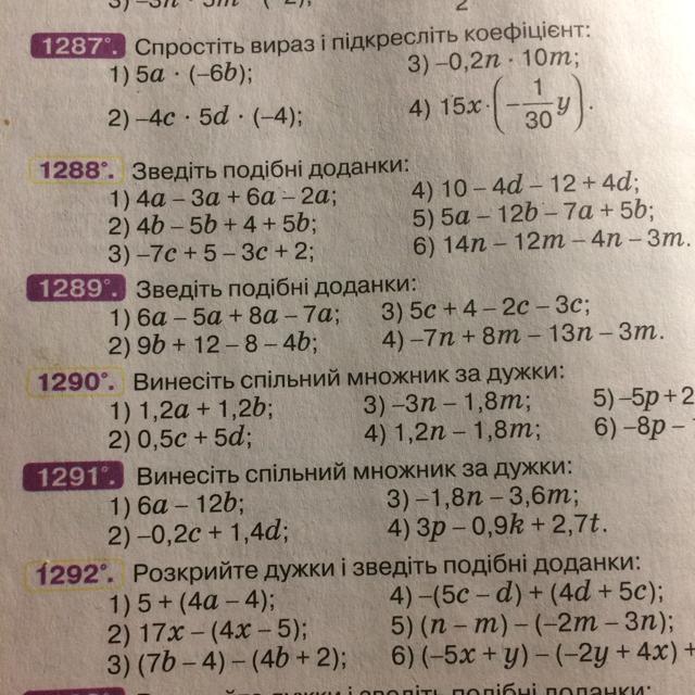 1289: 1) 6а-5а+8а-7а= 2а;