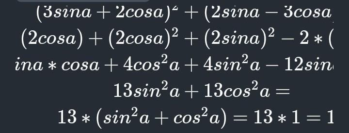 Сократите выражение: (2sin 3 - 3cos 3) ² + (2cos3 + 3 sin 3)