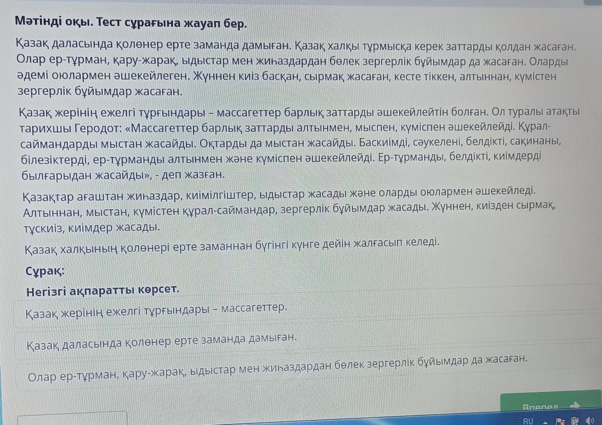 Олар ер-тұрман, қару-жарақ, ыдыстар мен жиһаздардан бөлек зергерлік бұйымдар жасаған.