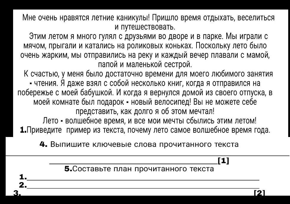 4. Летние каникулы, отдых, путешествие, чтение, друзья, отпуск, новый велосипед, волшебное время.