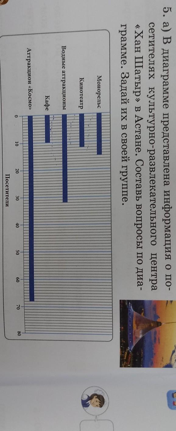 Задавайте вопросы по типу "Назовите разницу между посетителями вна Аттракционе и в Кафе