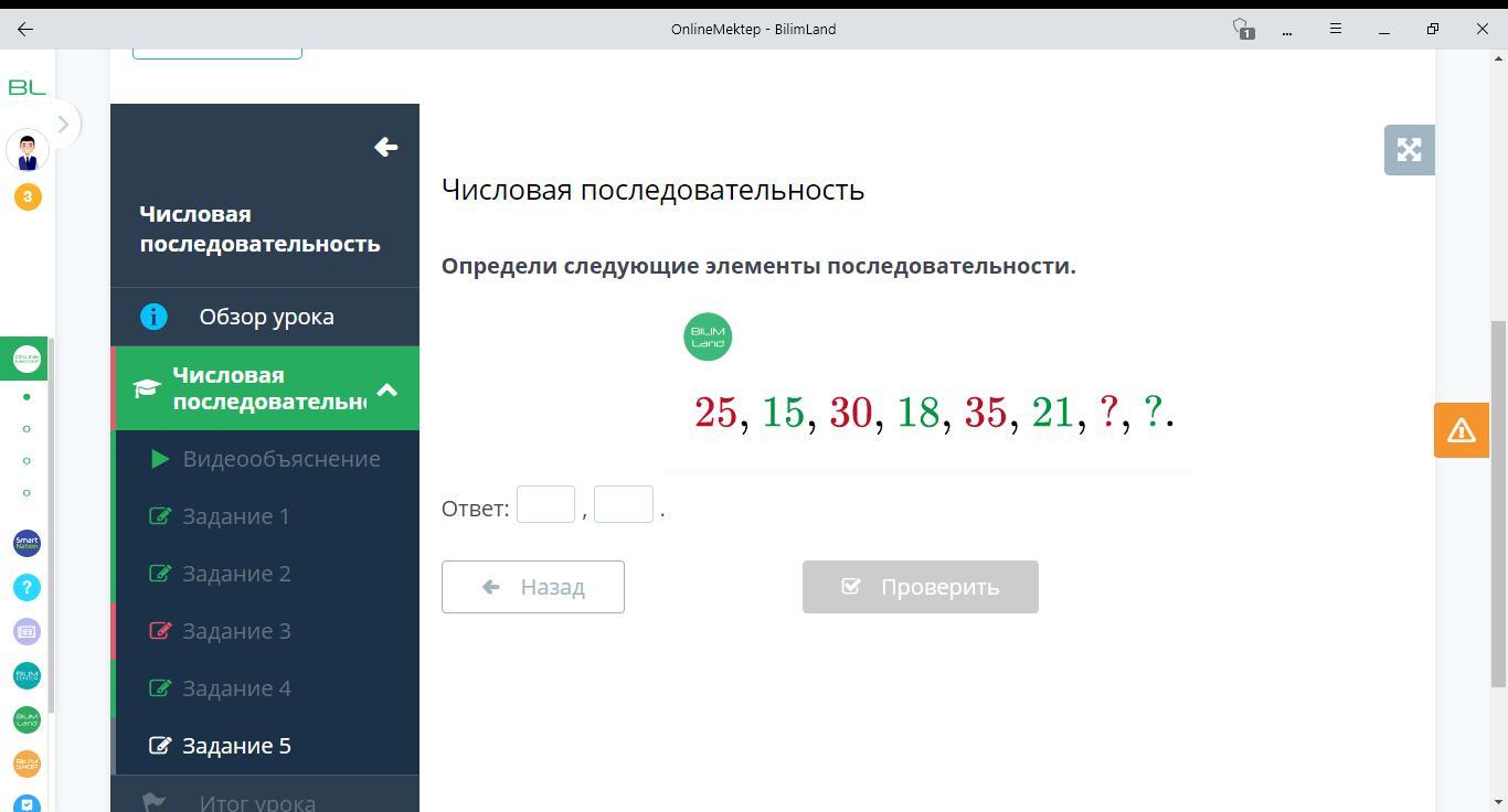 Объяснение: Смотри, видишь то что красным отмечено? Тоесть если смотреть только на красное там прибавляется по +5, а в зеленом по +3. Значит 21+3=24, 35+5=40