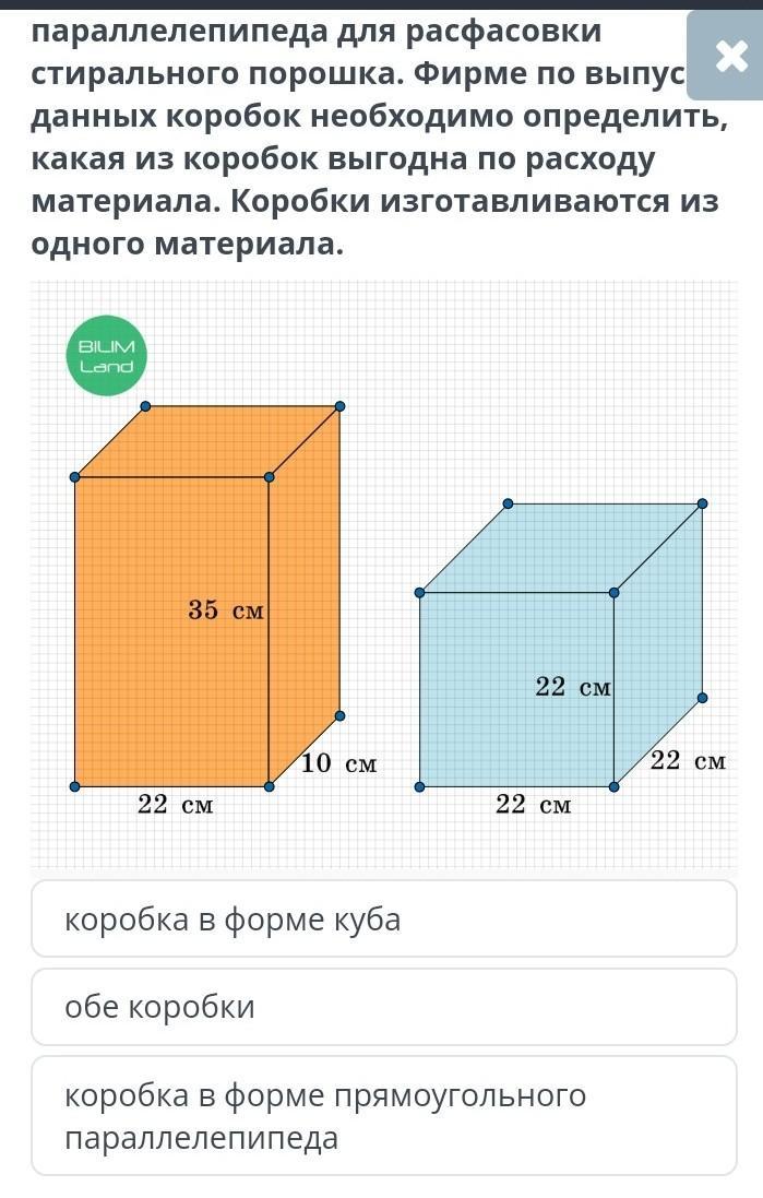 Вариант А, коробка в форме прямоугольного параллелепипеда