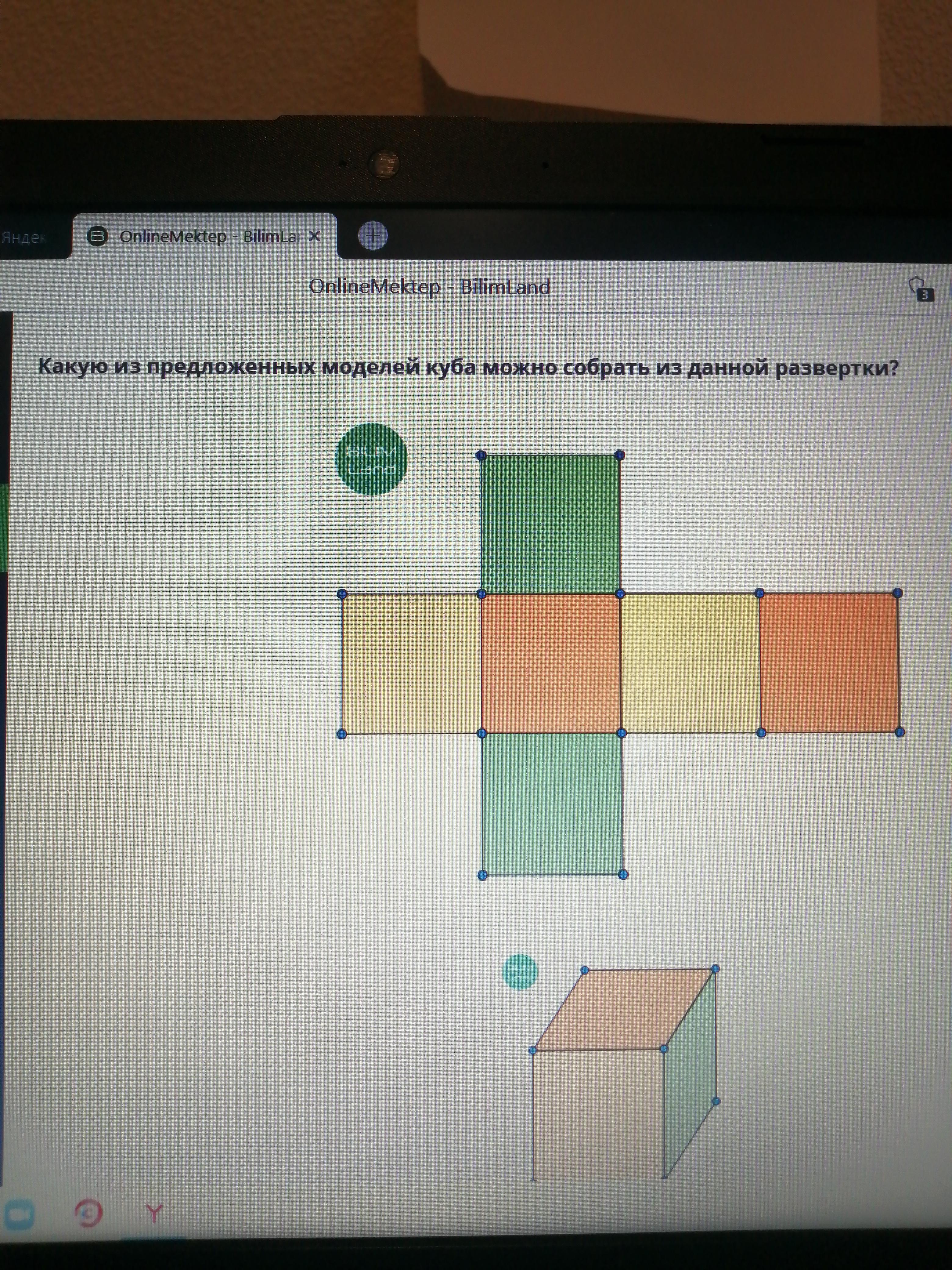Просто представьте если Вы склеите этот куб. Оранжевые стенки вверх/низ, первые боковые - желтые, вторые боковые - зелёные. Друг на против друга все цвета получаются.