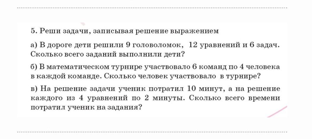 1.9+12+6=27(з) 2.6×4=24(ч) 3.10+(4×2)=18(мин)