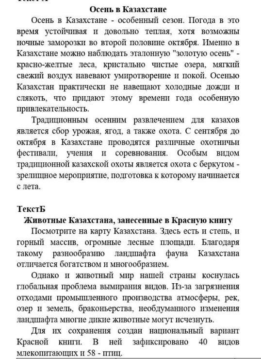 Оба текста говорят о Казахстане, о природе страны и о животных.
