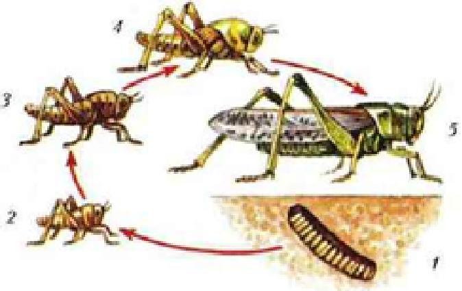 1/2/3/4 это все личинки 5 это взрослое насекомое (имаго) и еще первое можно выделить и написать яйцо, а так это личинки они линяют и вырастают
