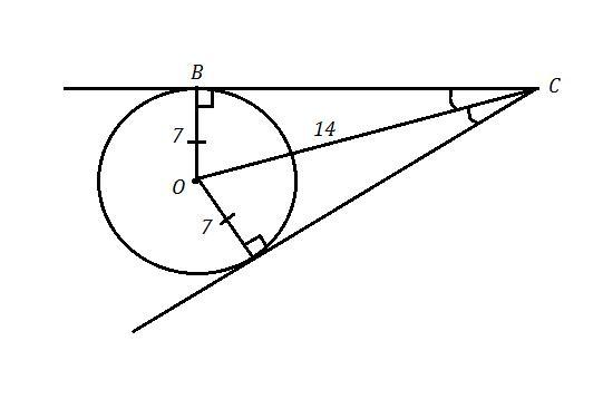 ΔОАС и ΔОВС - прямоугольные и ΔОАС=ΔОВС , так как ОА=ОВ - это радиус R=7 см , ОС - общая гипотенуза , причём ОС=14 см .