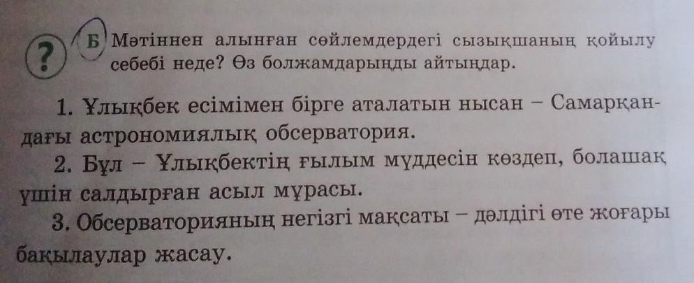 Б) Мәтіннен алынған сөйлемдердегі сызықшаның қойылу