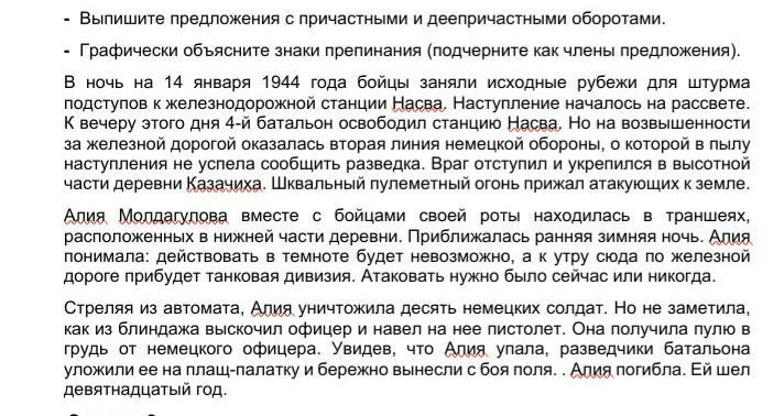 Алия Молдагулова вместе с бойцами своей роты находилась в траншеях*, /расположенных в нижней части древни/(ПО ~~ ).
