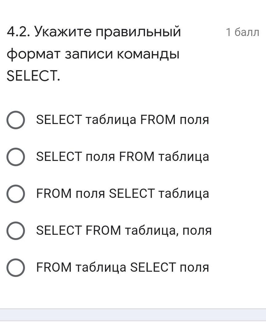 SELECT FROM таблица, поля