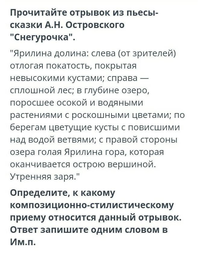 Прочитайте отрывок из пьесы-сказки А.Н. Островского "Снегурочка".