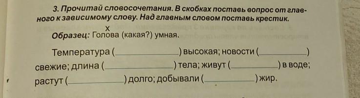 3. Прочитай словосочетания. В скобках поставь вопрос от глае-